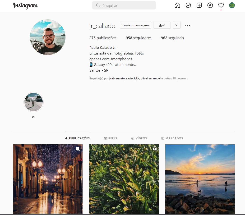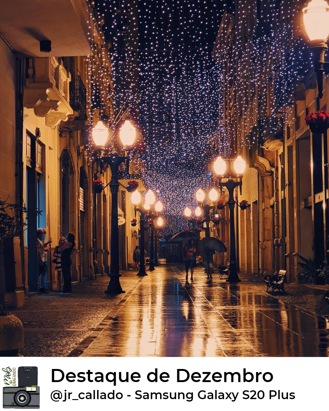 Paulo Roberto Calado Junior repetiu o feito de ser destaque do mês do Mobgrafando, dessa vez em dezembro de 2021. Com um registro feito usando o Samsung Galaxy S20 Plus, ele evidenciou uma uma paisagem urbana onde as luzes de natal embelezam a noite nas ruas de Santos, e conquistou 158 curtidas dos mobgrafistas da comunidade.